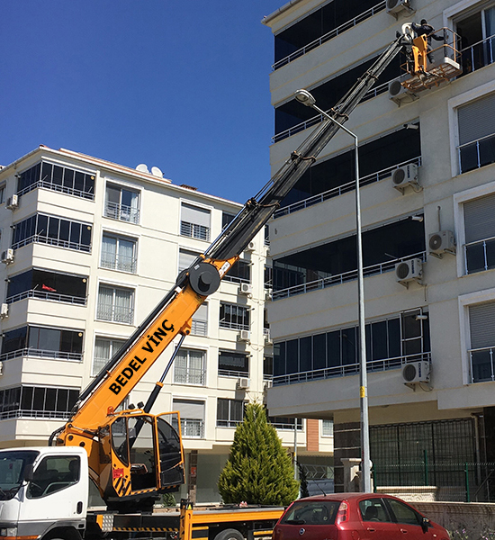 Samsun'da vinç kiralama için Bedel Vinç sizlere hizmet vermektedir, Samsun sepetli vinç ile dış cephe temizliği tabela montajı yüksek işlerinizde güvenli hızlı hizmet sunar.